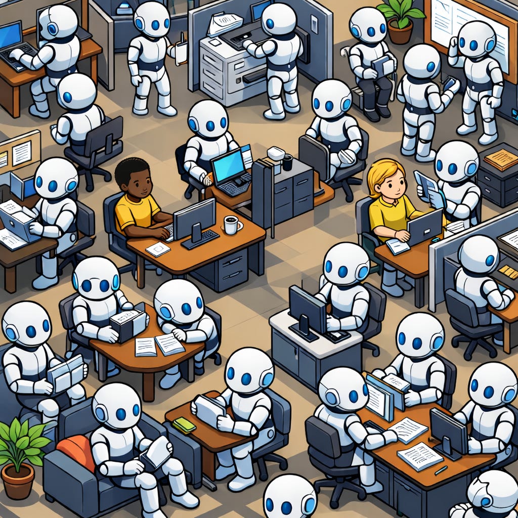 The McKinsey report describes some imagined scenarios, including a buildings materials depot. This is very much in the ‘physical’ world end of the spectrum, but you can see how the workflow will include AI agents managing inventory and ordering materials, providing tailored customer advice, humans building customer relations and supervising the store, and robots transferring and loading materials. In another example, Jason Lemkin, the founder of SaaSTt, the largest community of SaaS (Software as a Service) events, describes how his company replaced a team of approximately 10 human sales and business development staff with a team of 2.5 people supervising 20+ agents. [9]