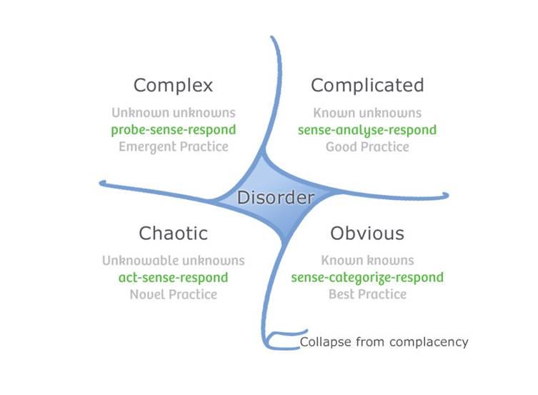 Perhaps the biggest cultural difference in moving to a product way of working is the change in role of product specifications. Consider the ‘systems’ approach described earlier. This is optimised for ‘complicated’ problems – i.e. problems where there is a known relationship between cause and effect – where problems can be analysed and decomposed. Creating many sophisticated engineering products falls into this category – for example bridges, power plants. In this model, risk is reduced by specifying the solution up front.